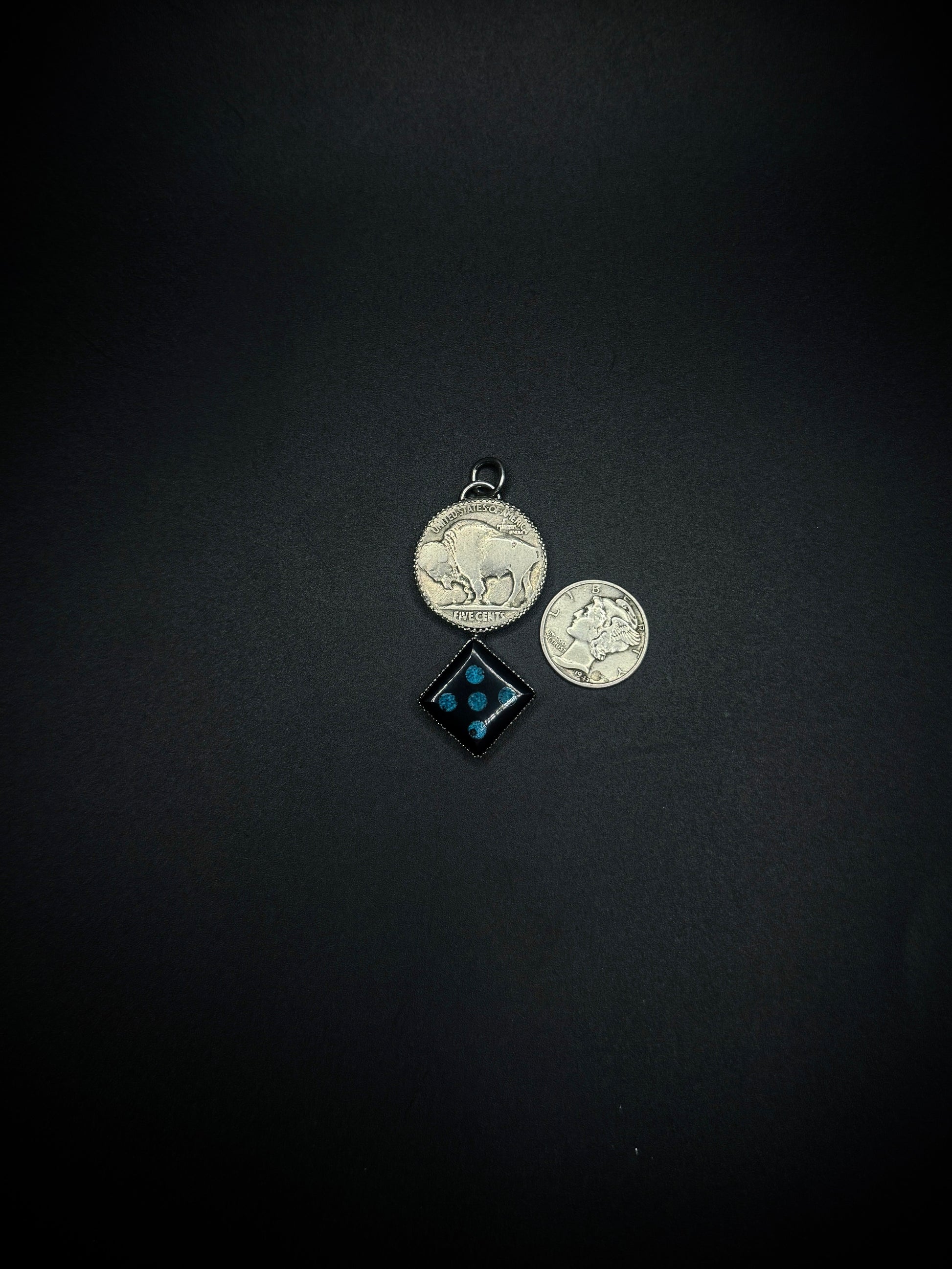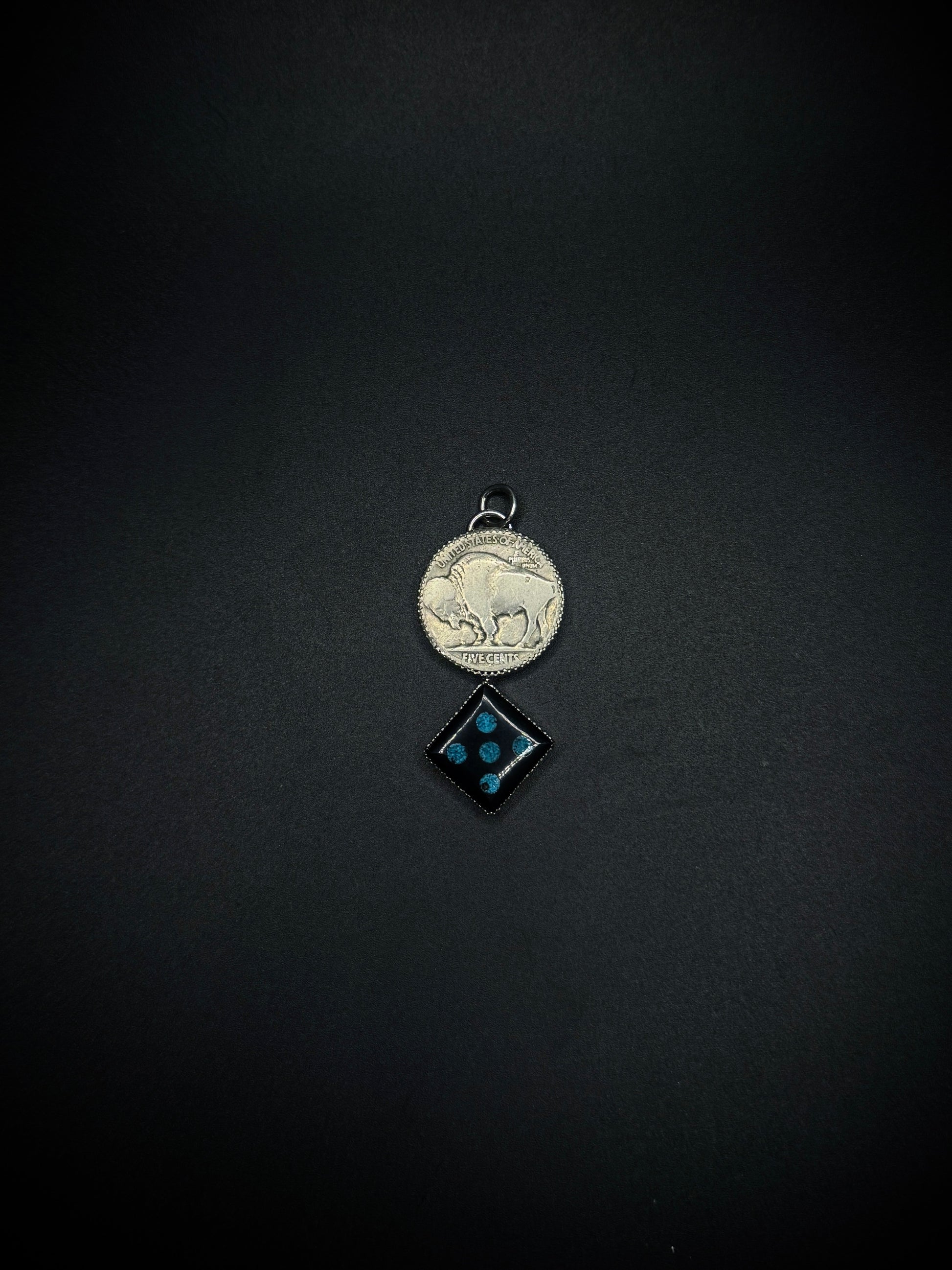 Buffalo Nickel / #5 Onyx & Kingman Turquoise Inlay Pendant