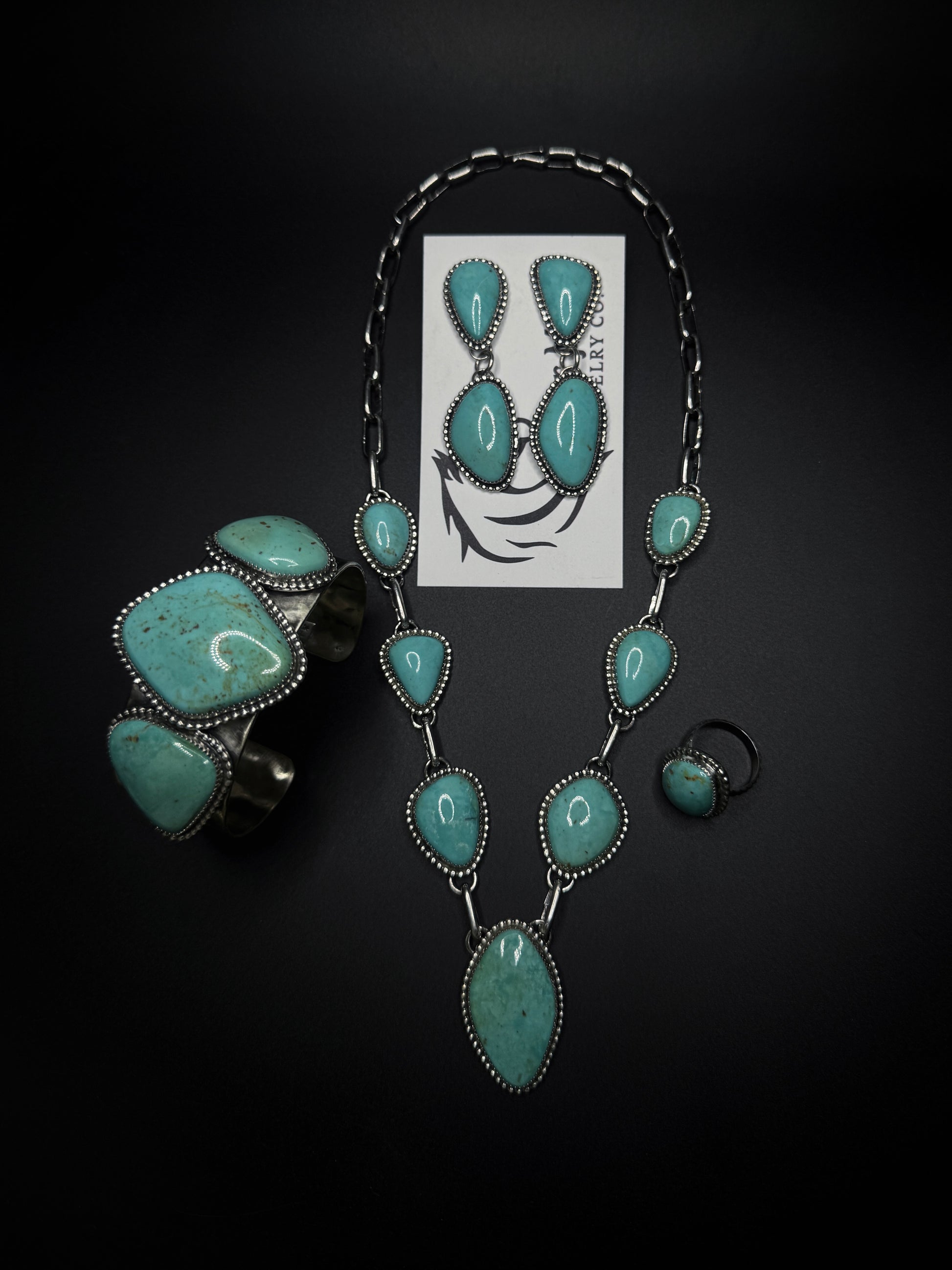 This one-of-a-kind set is crafted entirely by hand and set in sterling silver, featuring natural Sonora Turquoise. Each piece is designed with heirloom quality and longevity in mind, meant to be worn and treasured for generations to come. Purchase individually, or enjoy special bundle pricing when you purchase the full set. Please read below: