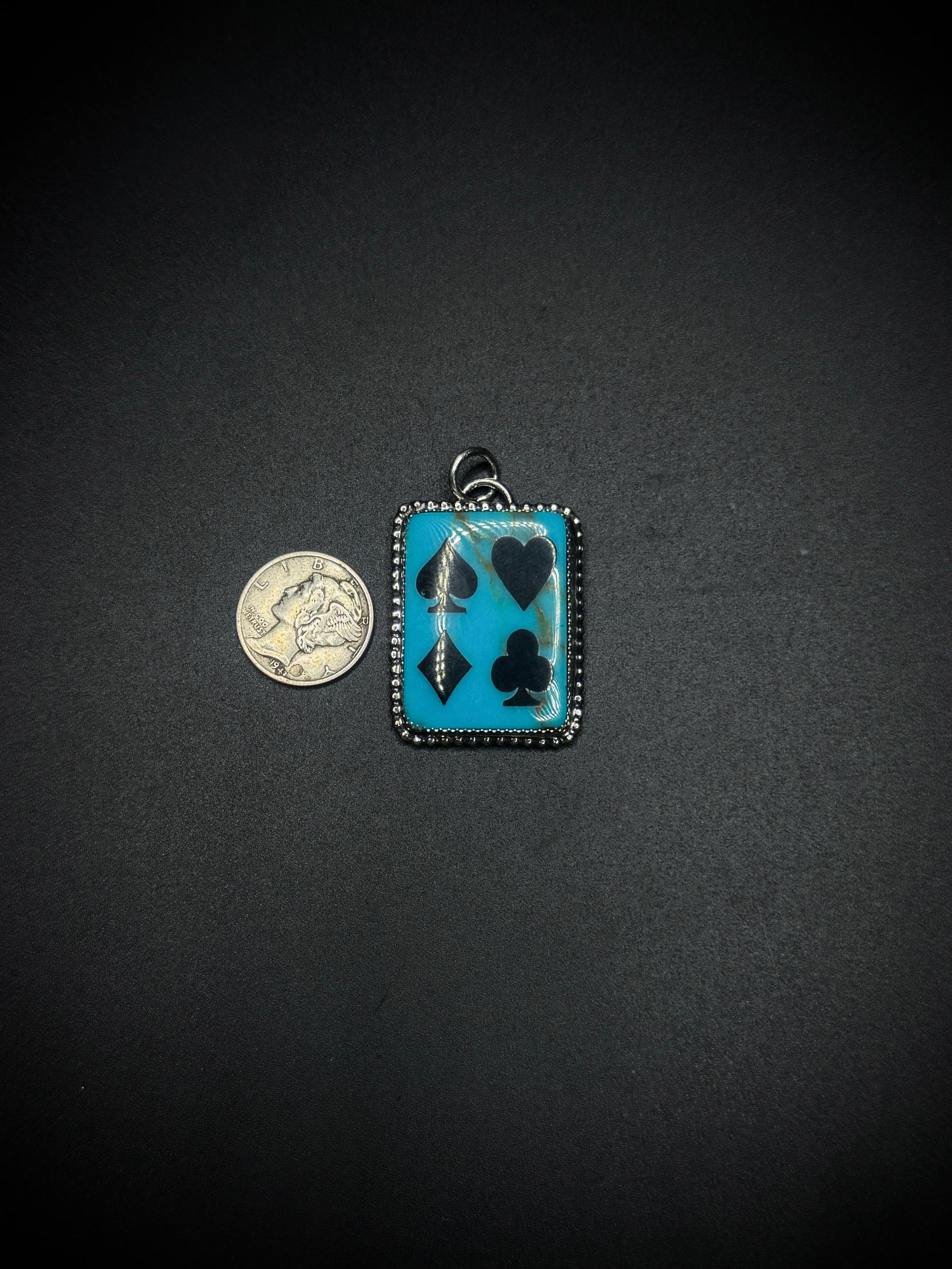 Turquoise with Onyx Inlay Card Pendant