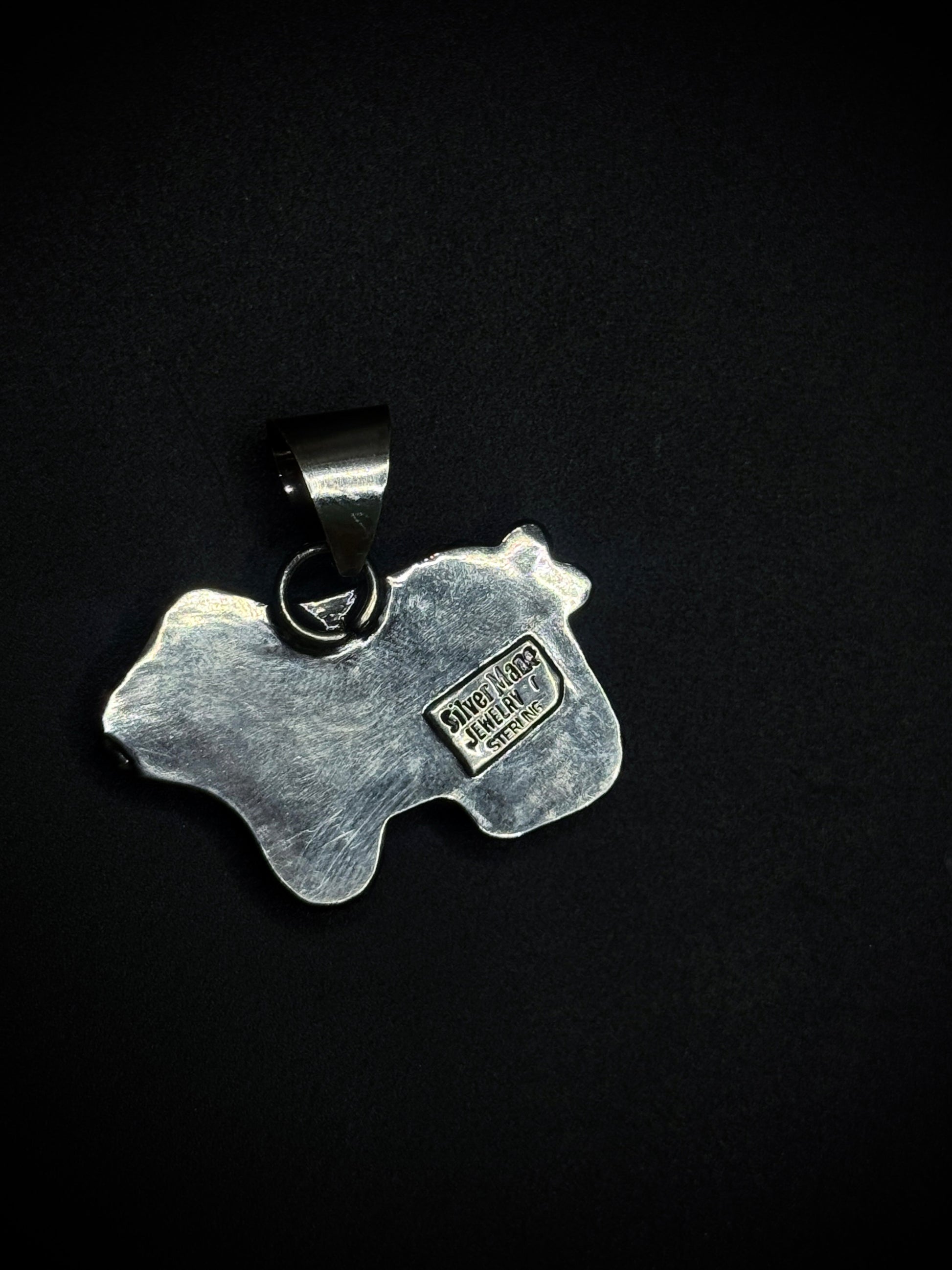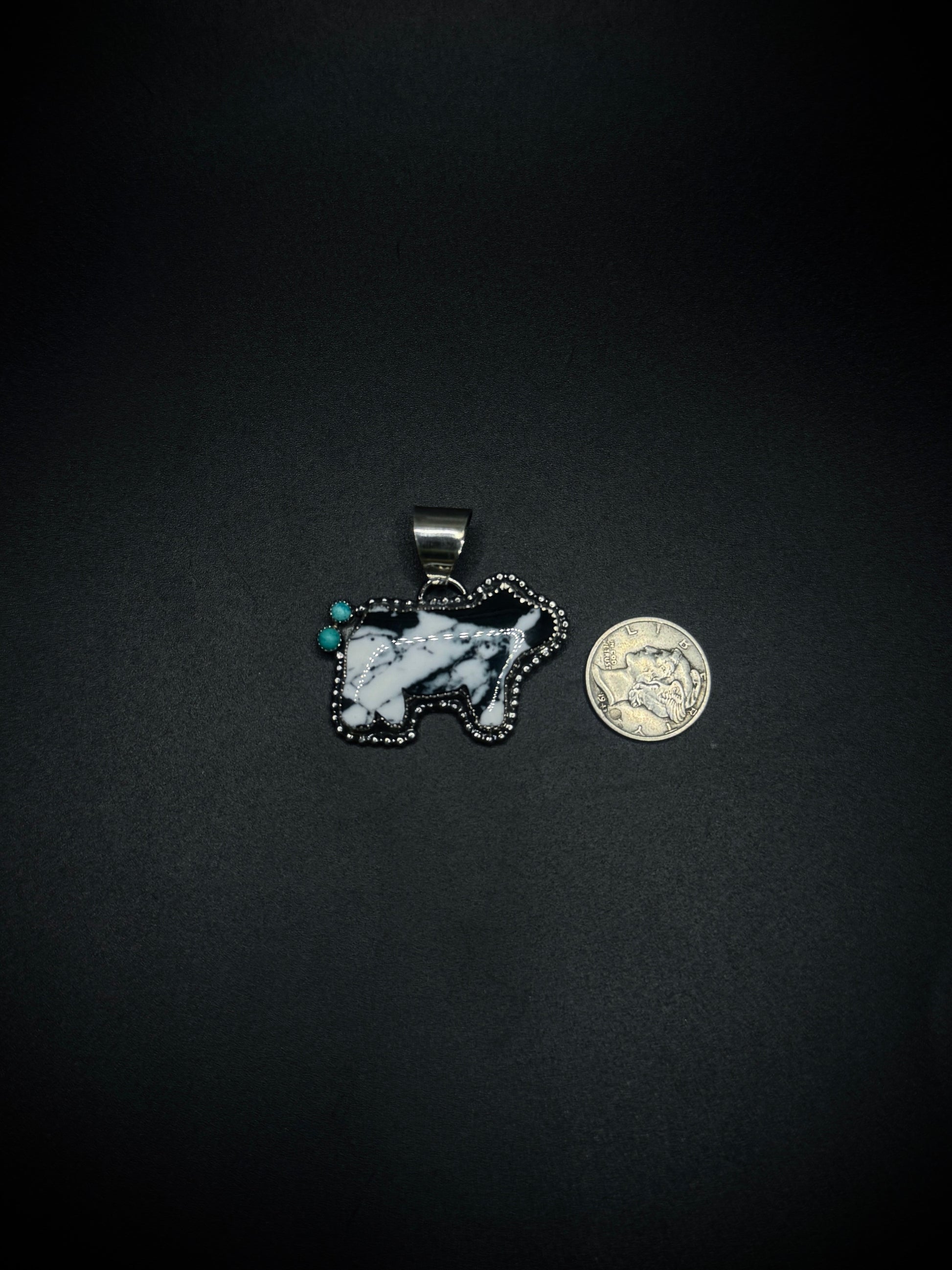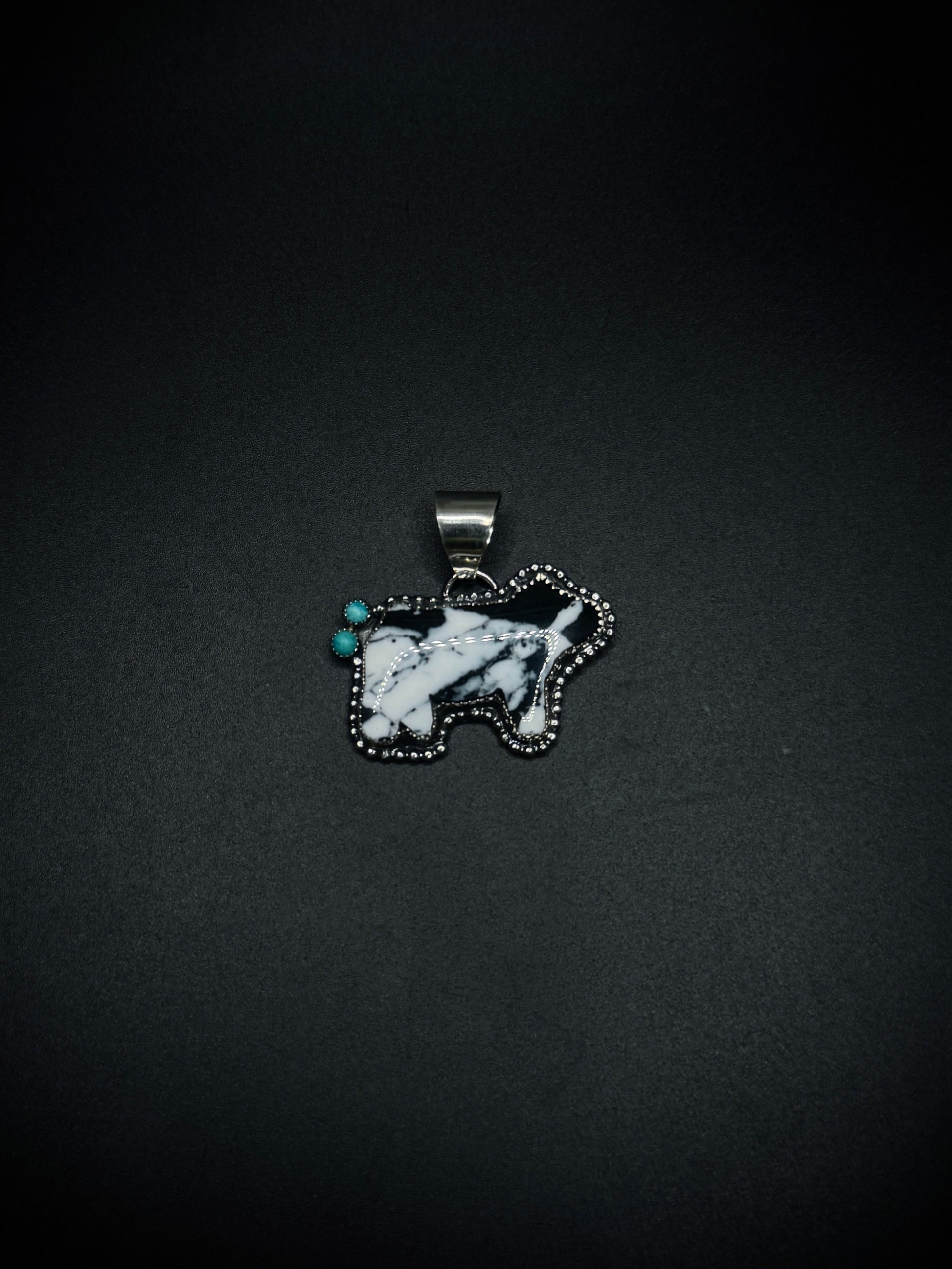 White Buffalo Pig Pendant with 2 Kingman Turquoise Stones